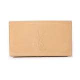 Details: Tan Vernice Leather / Gold-Tone Hardware / Stitched YSL Logo At Front / Stitching At Exterior / Bronze Satin Lining At Interior / Single Compartment / Single Slit Pocket At Interior Wall / Magnetic Snap Closure At Front Flap