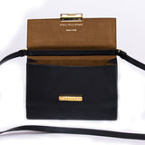 Details: Black Synthetic Leather / Double Carried Shoulder Or Cross Body / Adjustable Shoulder Strap / Flap Magnetic Press Closure / Gold Tone Hardware / Brown Interior Suede / Stamped Stella McCartney Made In Italy On The Inside