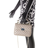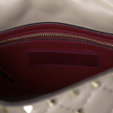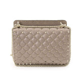 Details: Taupe Quilted Leather / Gold-Tone Hardware/ Detachable Chain-Link Shoulder Strap / Flat Handle at Top / Spikes Embellishment Throughout / Leather Lining / Single Compartment with Dual Pockets, One with Zipper / Flap Closure with Turn-Lock at Front