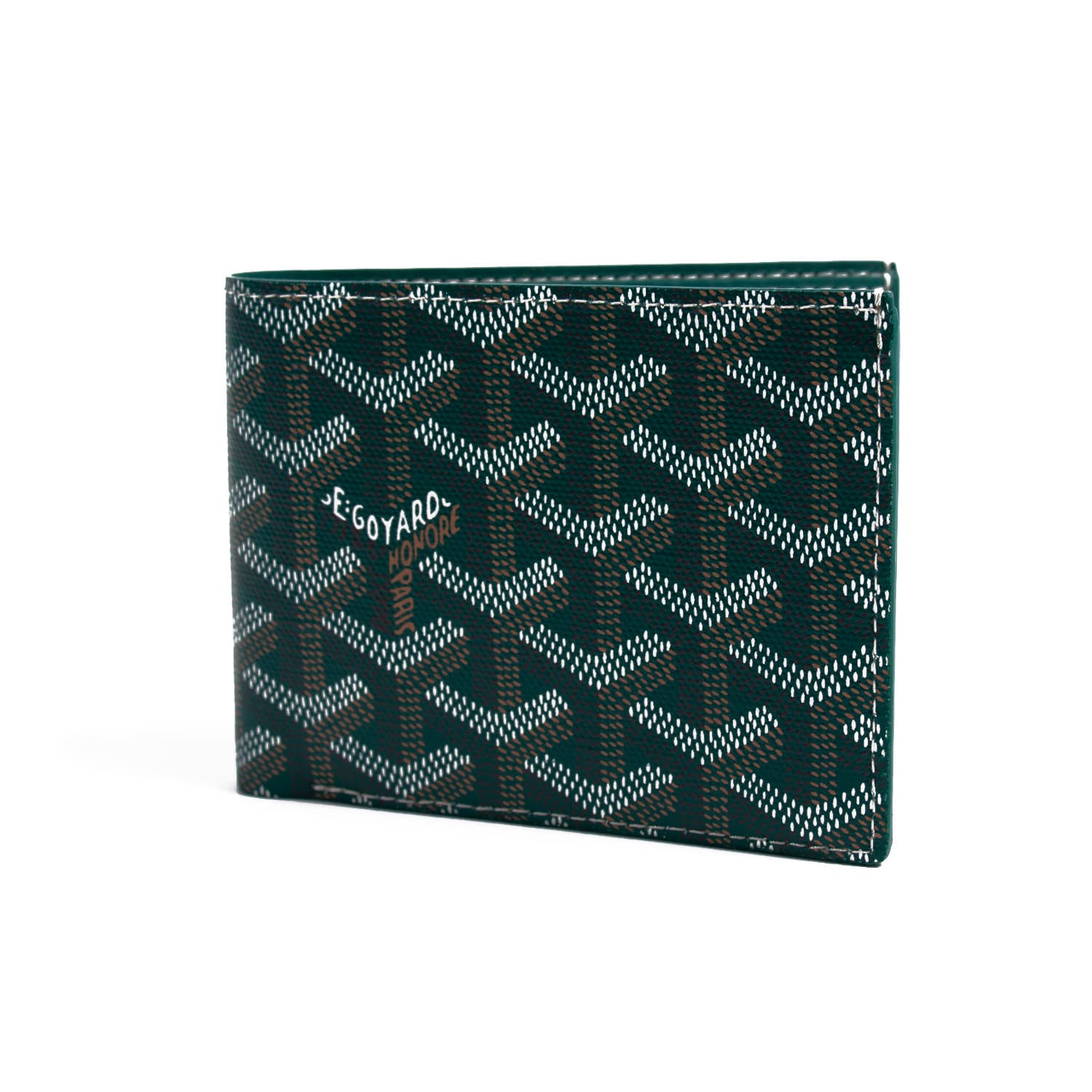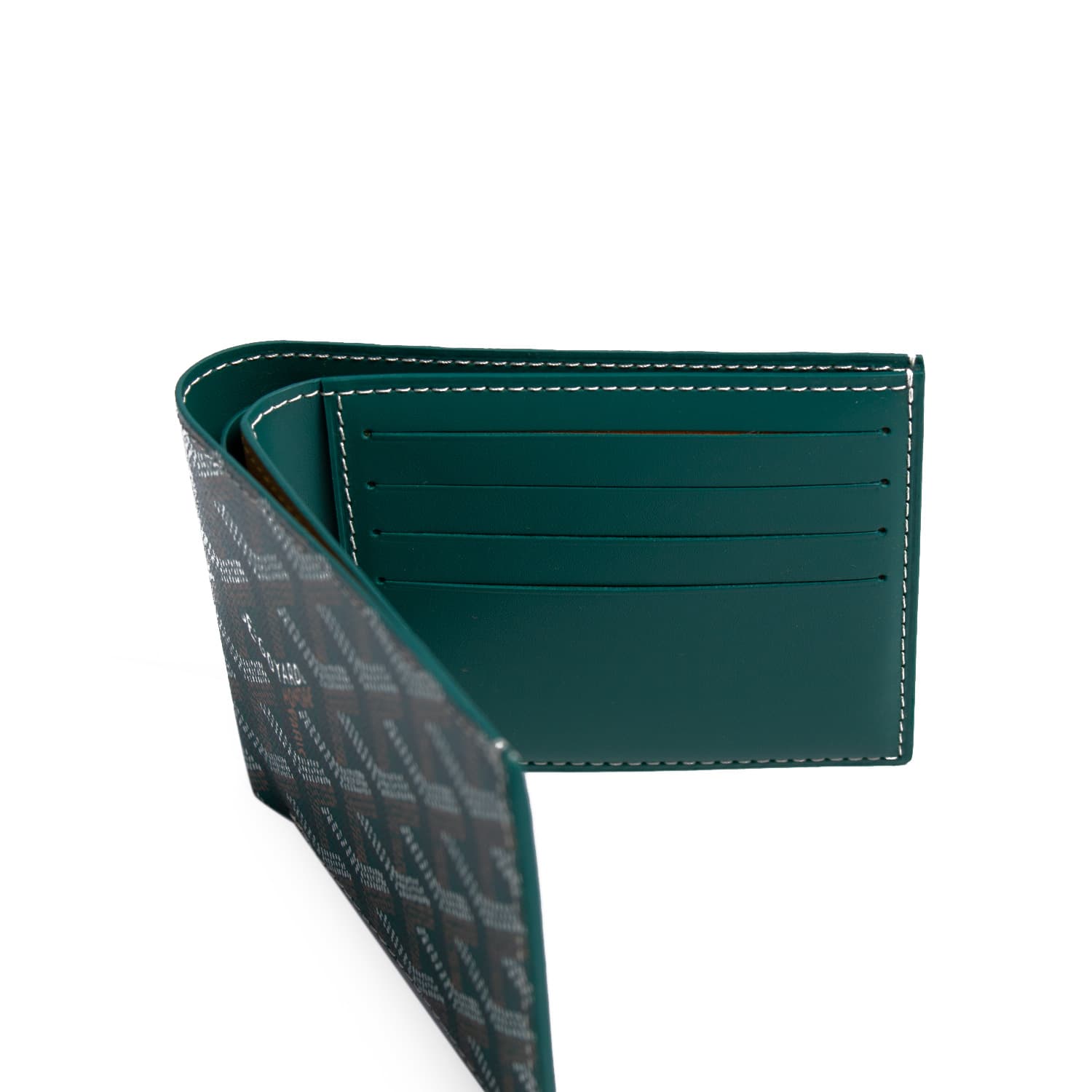 Details: Green and Multicolor Stenciled Goyardine Coated Canvas / Green Leather Trim / Yellow Grained Interior Leather / Eight-Card Slots / Dual Bill Compartments / Dual Pockets